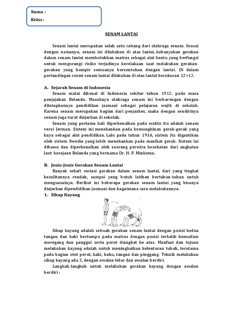 Berikut cara melakukan kayang dengan bantuan dinding: Pengertian kayang dan cara melakukannya. Cara melakukan kayang dari sikap berdiri: Untuk bisa melakukan gerakan kayang perlu kelenturan otot pinggan dan juga proses ini bisa dilatih dengan berbagai cara agar anda bisa melakukan gerakan. Jenis senam lantai menggunakan alat.